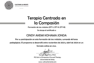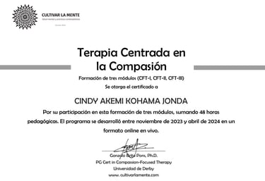 A lo largo de este camino, me he formado en diversas corrientes terapéuticas como la terapia cognitivo-conductual, terapia de esquemas, autocompasión y EMDR. Esta riqueza de enfoques me permite trabajar desde una mirada integradora, sensible y respetuosa, combinando herramientas basadas en la evidencia con una presencia genuina y amorosa que honra la historia de cada persona.